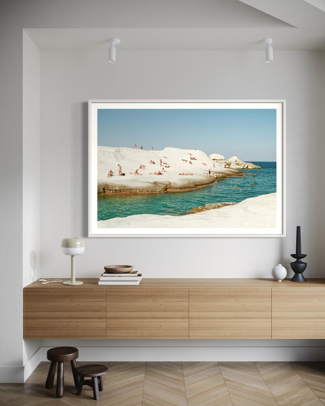 Photographed by Taylor O’Sullivan on 35mm film in Milos, Greece, this work captures the island’s striking white rock formations and timeless summer scenes, blending sculptural landscapes with the dreamy texture of film. Bring home Mondria here.