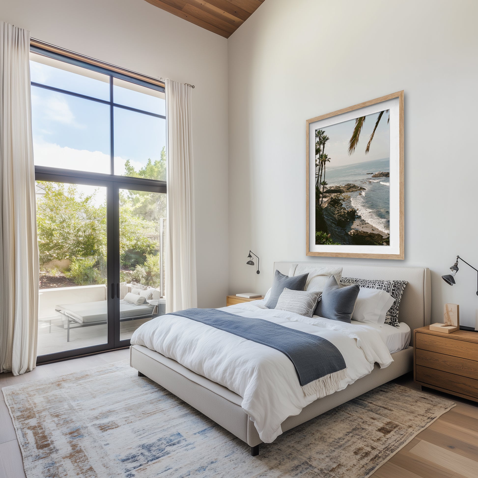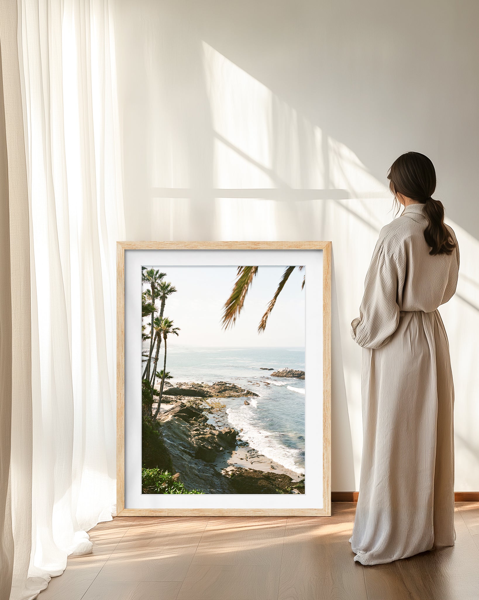 Our solid wood frames are imported from Italy, then cut and joined locally in Southern California. Prints are expertly mounted with a 2-inch mat board to provide the sturdy feel, flush setting and high quality aesthetic you'd find in any fine art gallery. Each frame is handcrafted with a sheet of UV-blocking acrylic glass and comes with self leveling hanging hardware, so your artwork is ready to hang as soon as it arrives.